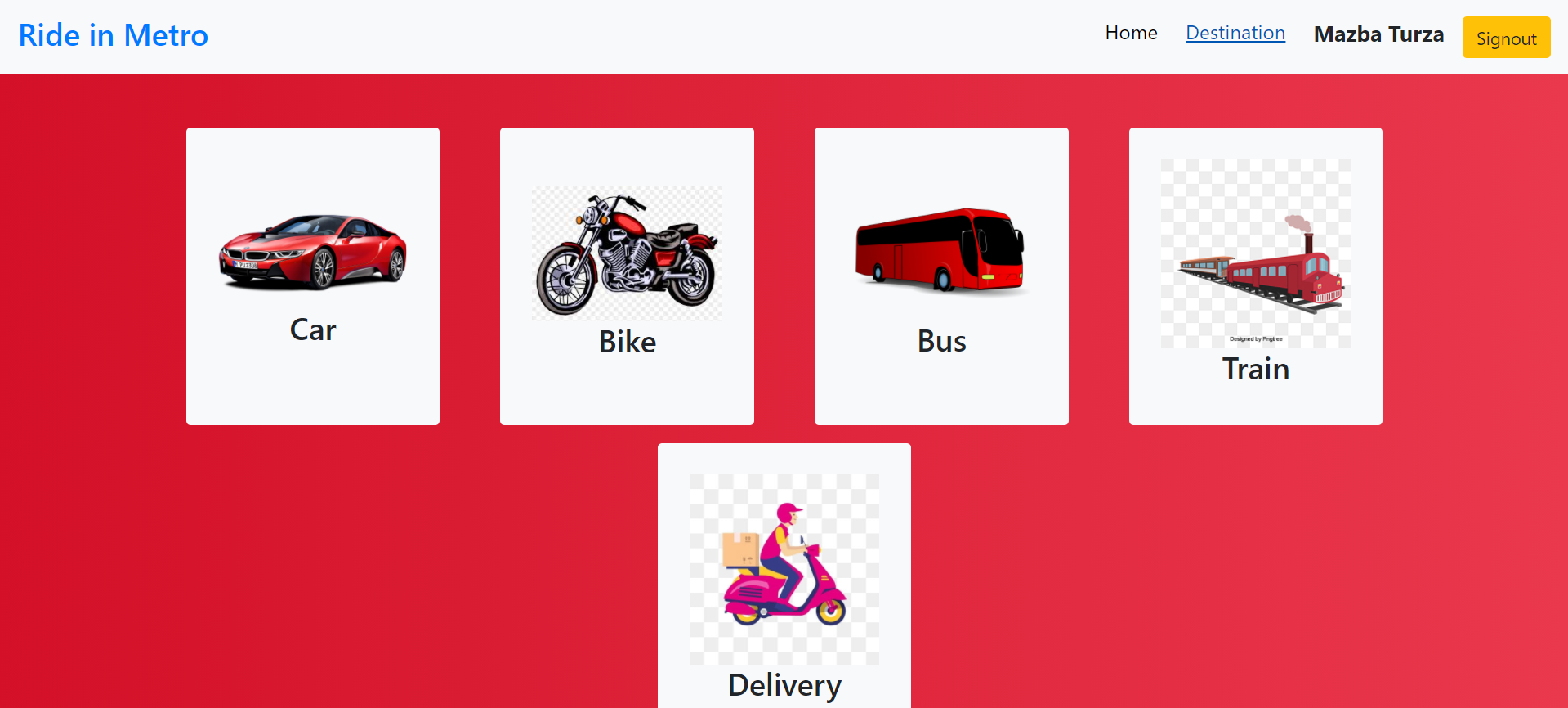 This is a ride sharing app. Any logged in user can choose a ride in car, motorcycle, bus, train.